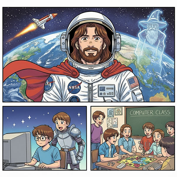 ギャリオットは冒険ゲーム作りに熱中した日々から、宇宙へ情熱を傾け、現実の冒険を楽しみました。
