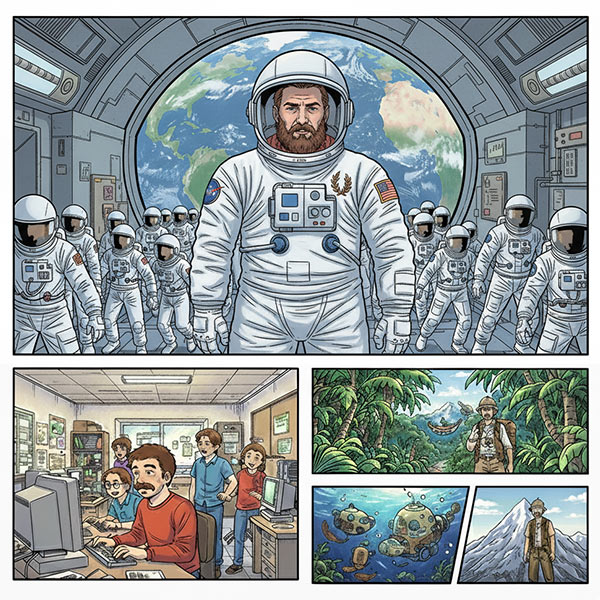 ➂民間宇宙飛行士として宇宙へ旅立ち、現在はゲーム開発と「リアル冒険家」として世界を冒険し続けている。